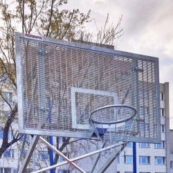 Стальной баскетбольный щит размером 105х180 см из металлической сетки, закрепленной на стальной раме из оцинкованного профиля.