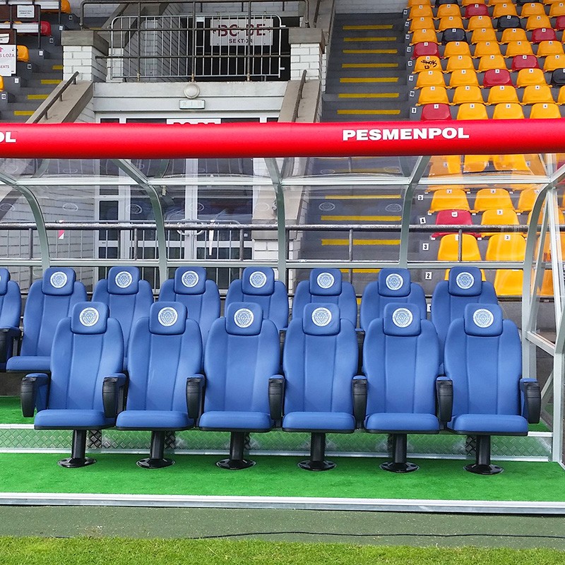 Обитое сиденье эргономичной формы со спинкой и подлокотниками, предназначенное для оснащения зрительного зала или скамеек для запасных игроков