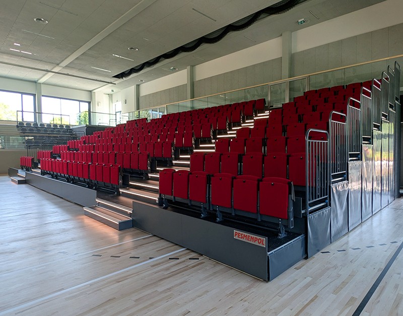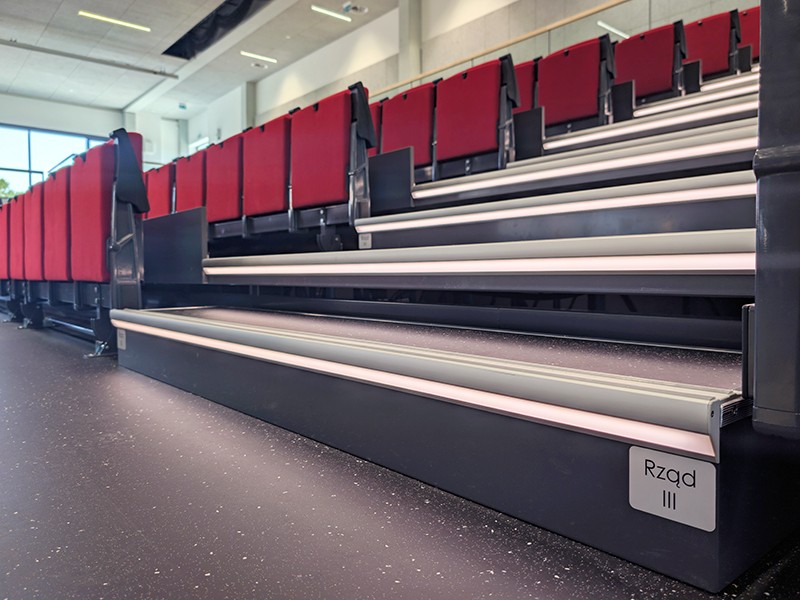 9-rows telescopic tribune with tilting upholstered seats and electric drive - Krakow, Poland