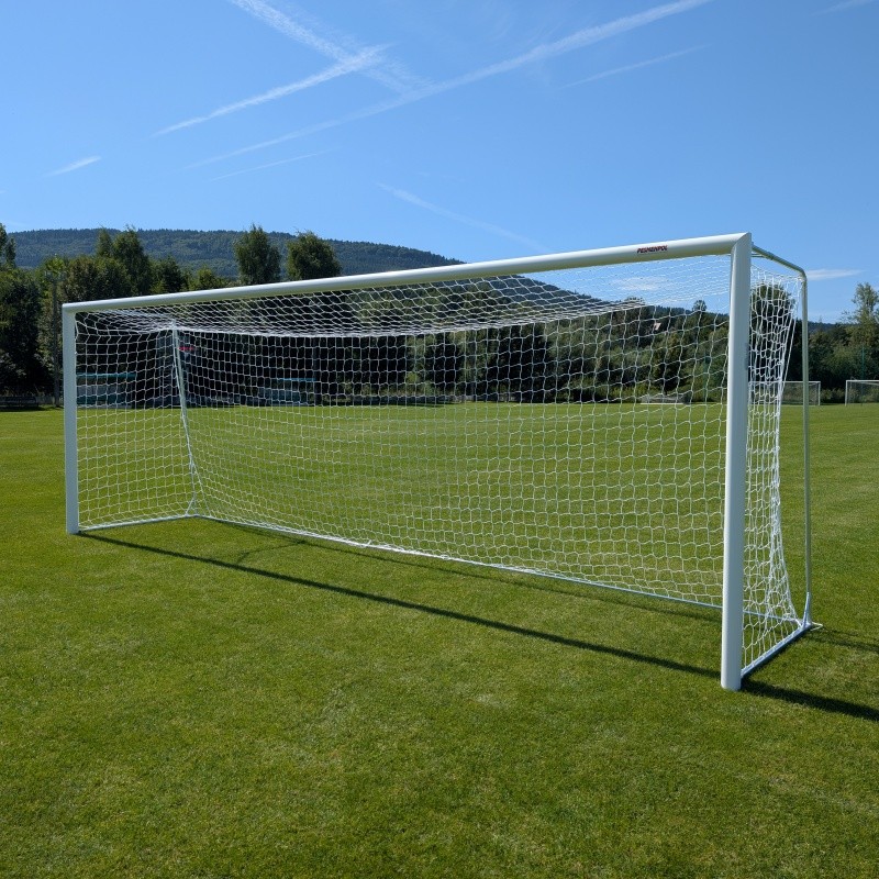 Профессиональные футбольные ворота 7,32x2,44 м со складными полукругами, главная рама из алюминиевого профиля 120х100 мм, монтированные во втулках, находящихся в поверхности (втулки в комплекте)