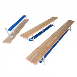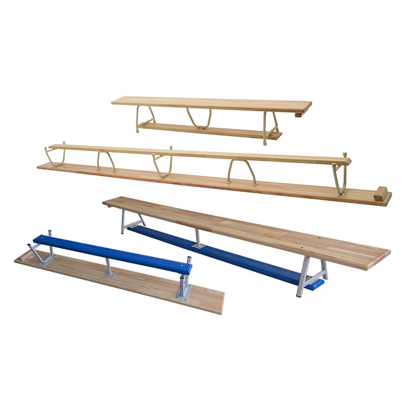Деревянные гимнастические скамьи высотой 30 см с металлическими ножками, оснащенные пластмассовыми колпаками, и креплением для установки на шведской стенке или на другом гимнастическом оборудовании, длиной от 2 до 4 м