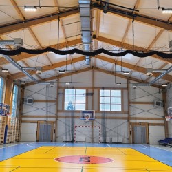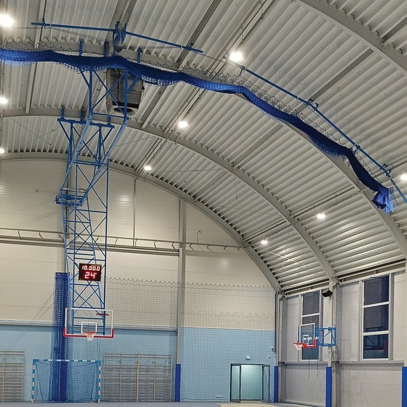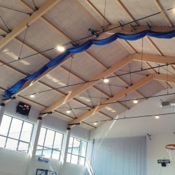 Вся система подъемного занавеса проектируется индивидуально под каждых спортзал.