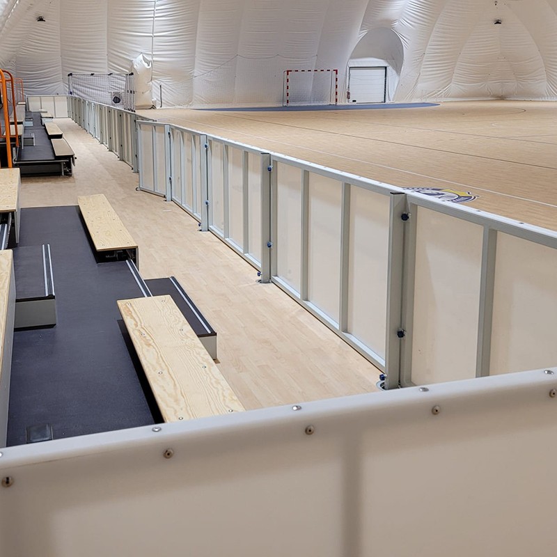 Изготовлены из полиэтилена толщиной 10 мм, ударопрочные, на стальной конструкции, демонтированные. Kрепятся к полу с помощью монтажной тарелки или во втулках.