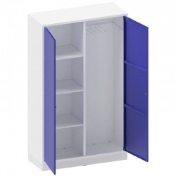 Многофункциональный, вместительный и прочный металлический шкаф предназначен для хранения спортивного оборудования и аксессуаров. Вместительность шкафа позволяет устанавливать большое количество полок для хранения мелкого спортивного инвентаря. Пара дверей, 2 секции (4 полки + крючки), плинтус. Шкаф с порошковым покрытием.