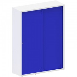 Вместительный металлический шкаф для хранения спортивного оборудования с прочной конструкцией, окрашенный порошковой краской, размер 200х150х50 см (В*Ш*Г), с передвижными дверьми, регулированная высота полок, перегородка для ласок, крюки